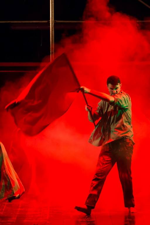La fabbrica che assume, in questo spettacolo, un ruolo tutt’altro che marginale è luogo ideale di comunità e di aggregazione, ma allo stesso tempo realtà e metafora teatrale che vede nell’unione, nel lavoro, nel sudore che accomuna questi uomini, un terreno fertile per il proliferare di idee insorgenti identificate come rivoluzionarie, perché anarchicamente ostinate al cambiamento.
